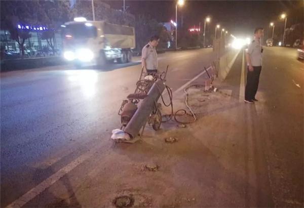 “那个人在干啥?鬼鬼祟祟的,去看看。”5月30日夜里11点多,临泉县公安局牛庄派出所民警例行巡逻中,发现一名男子正在道路中间的弯腰做着什么,身旁还放着一个装有钢瓶气罐的小推车。民警立即下车查看,一名男